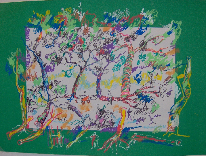 bambini disegnano gli alberi del Bosco di Gioia (24/4/05)